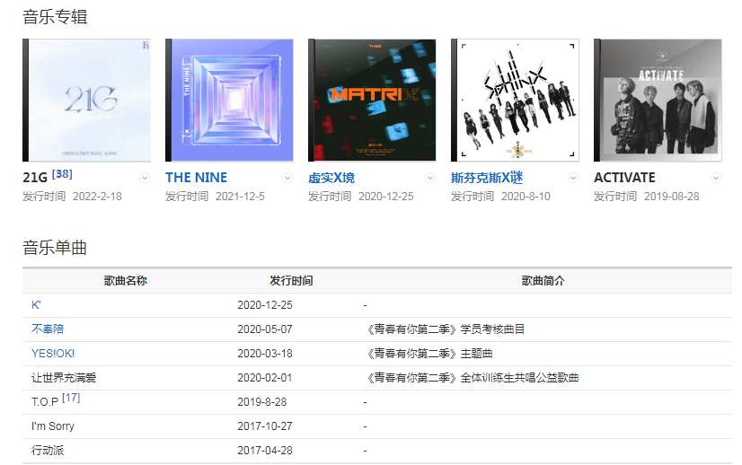 2021年3月13日,隨THE9組合參加的由抖音聯(lián)手浙江衛(wèi)視推出跨屏互動音樂綜藝《為歌而贊》播出;6月11日,參演真人秀節(jié)目《做家務(wù)的男人第三季》播出;8月5日,參加原創(chuàng)女性音樂人競演真人秀節(jié)目《爆裂舞臺》 ;12月5日,隨THE9組合發(fā)布畢業(yè)EP《THE NINE》,而該團體也就此解散。