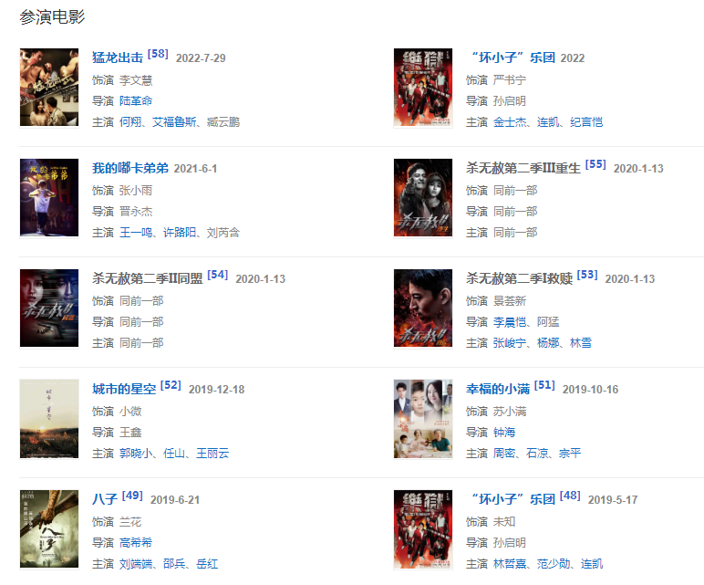 代表作品:黃金大劫案、紅樓夢、我要當(dāng)空姐、全家福、別叫我兄弟、重耳傳
