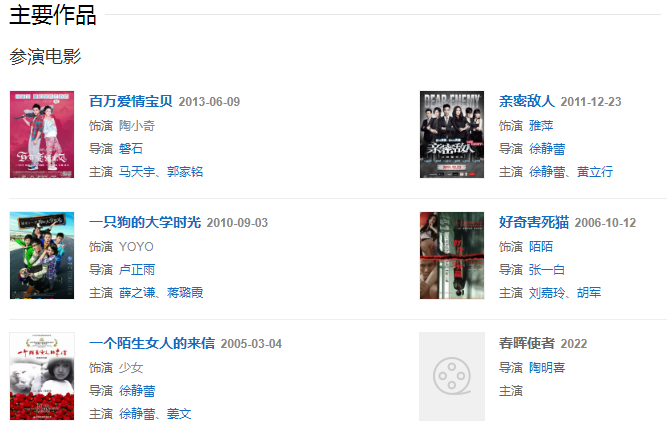 代表作品:一個(gè)陌生女人的來信、我的青春誰做主、你和我的傾城時(shí)光、暮白首