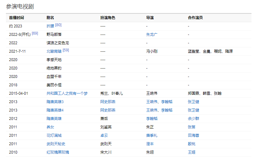 2004年,主演電視劇《誰主沉浮》。2005年,主演電視劇《寶蓮燈》,飾演王母娘娘。