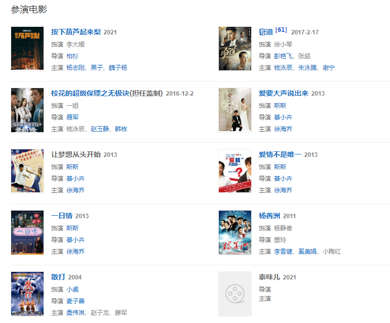 代表作品:天外飛仙、雪在燒、新一剪梅、后宮、X女特工、真愛惹麻煩、平凡的世界、時間都知道