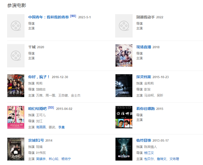 2022年,主演劇情電影《中國(guó)青年:我和我的青春》。