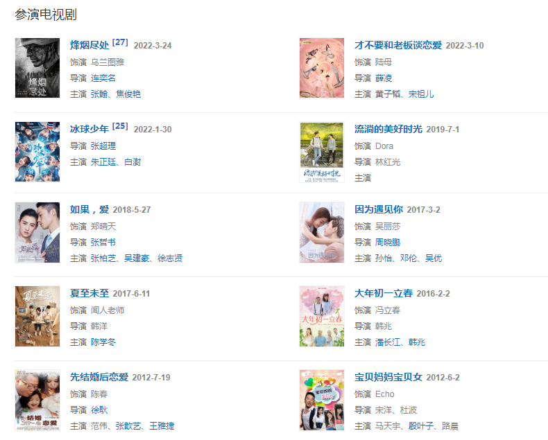2022年1月30日,參演的體育競技劇《冰球少年》播出 ;3月10日,友情主演的都市奇幻愛情劇《才不要和老板談戀愛》播出;3月24日,參演抗戰(zhàn)劇《烽煙盡處》,飾演男主的母親烏蘭圖雅。
