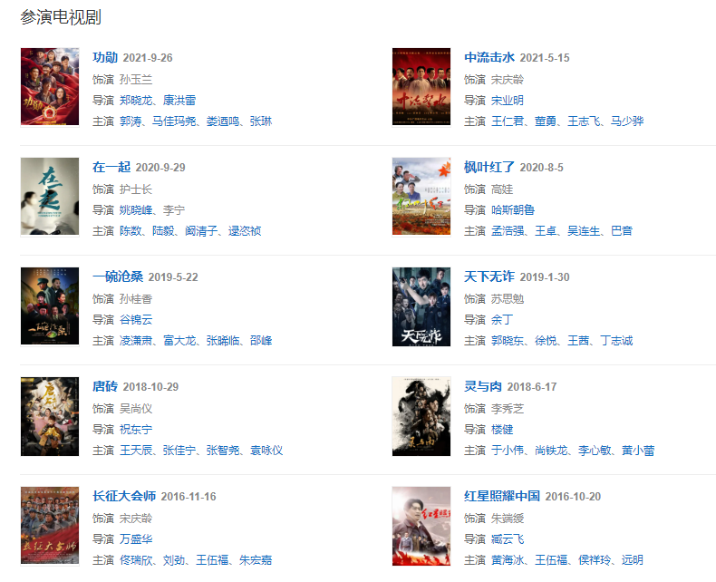 2016年4月,參演革命歷史劇《紅星照耀中國》,飾演上海地下黨政治局辦事處負(fù)責(zé)人朱端綬 [13] ;同年,參演電視劇《識汝不識丁》,飾演陳文帝的皇姐陳婧 。