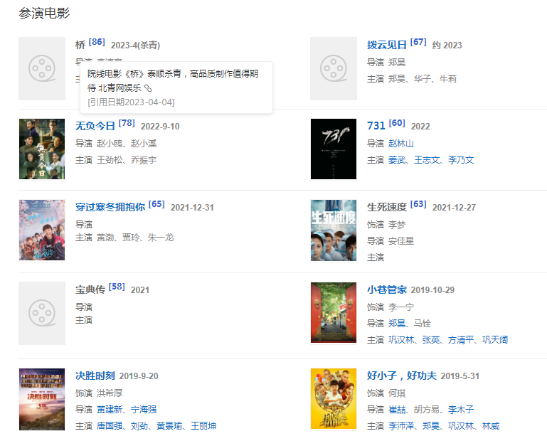 2022年4月7日,參演的北京師范大學(xué)形象藝術(shù)片《無負(fù)今日》正式啟動。