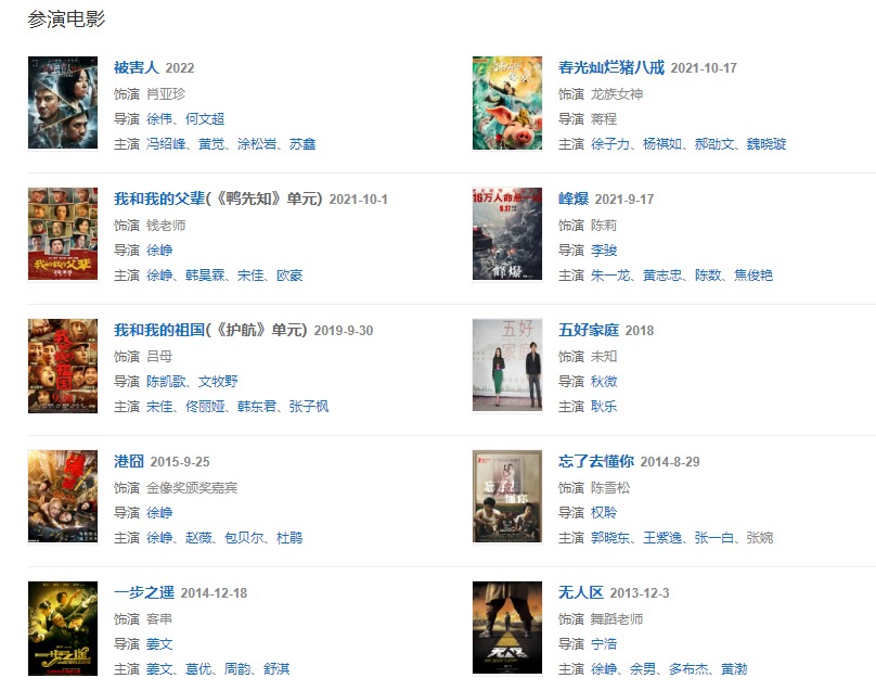 2021年10月,參演話劇《直播開國大典》 。同年參演電影《峰爆》和《我和我的父輩》。
