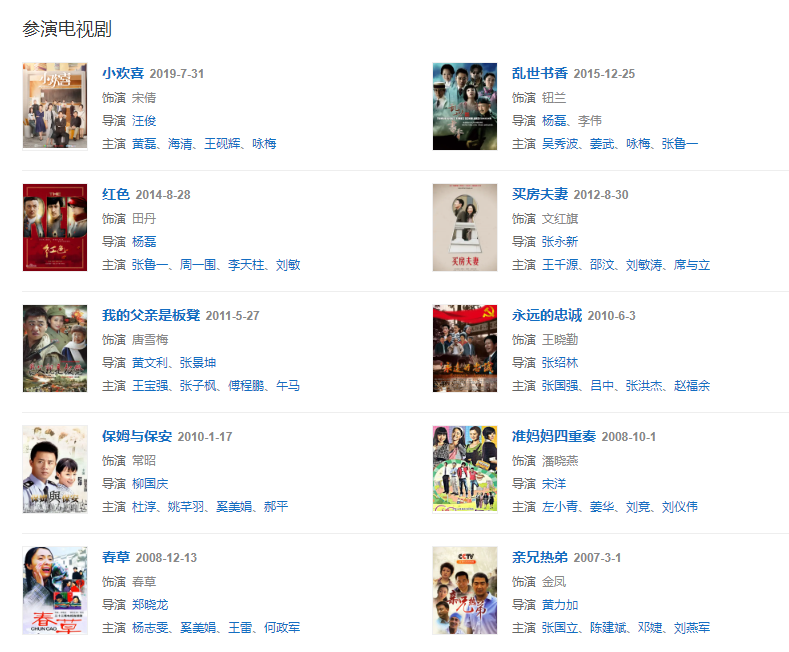 代表作品:陽光燦爛的日子、春光燦爛豬八戒、黑眼睛、美麗新世界、空鏡子、漢武大帝、亂世書香、紅色、小歡喜