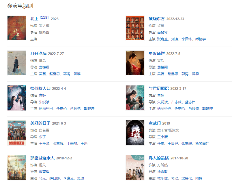 2011年,憑借諜戰(zhàn)劇《斷刺》獲得第29屆中國電視劇飛天獎(jiǎng)優(yōu)秀女演員提名。2013年,主演戰(zhàn)爭劇《亂世三義》。