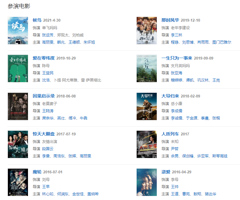代表作品:北京人在紐約、紅粉、天下第一樓、更年期的幸福生活、大風(fēng)歌、紅玫瑰黑玫瑰、血玲瓏、護(hù)國良相狄仁杰:風(fēng)摧邊關(guān)、海棠依舊、別動我的抽屜、郭海的家事、五十玫瑰、喋血錢塘江、血色玫瑰2之女子別動隊(duì)、大漢口
