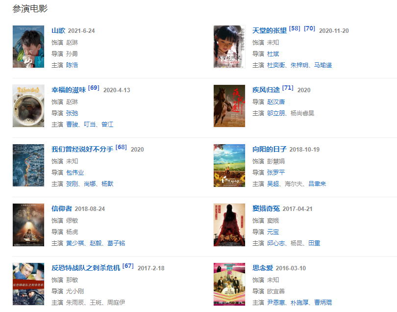 2021年6月4日,參演電影《山歌》播出,飾演趙琳。