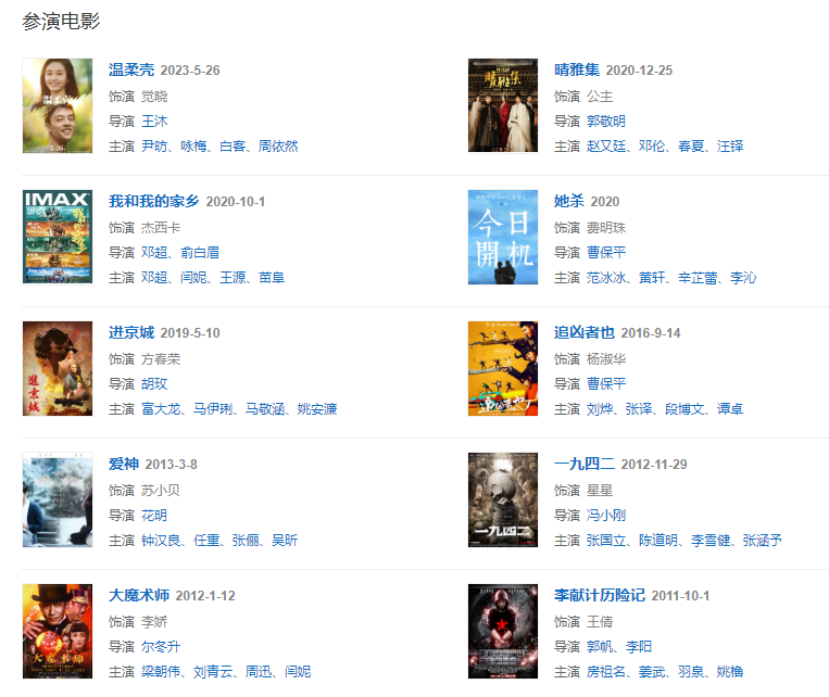 王子文因出演《家的N次方》、《男人幫》等劇集而被觀眾認識,除了出演電視劇,王子文出演的電影也取得了不錯的成績,不論是搭檔梁朝偉出演的《大魔術師》,還是與馮小剛導演合作的《唐山大地震》都給人留下了一定的印象,王子文塑造的這些性格迥異的角色,不僅贏得了觀眾的喜愛,演技也受到了肯定。