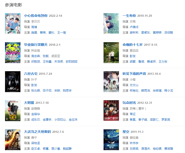 2011年,主演成長(zhǎng)愛(ài)情奇幻電影《星空》。