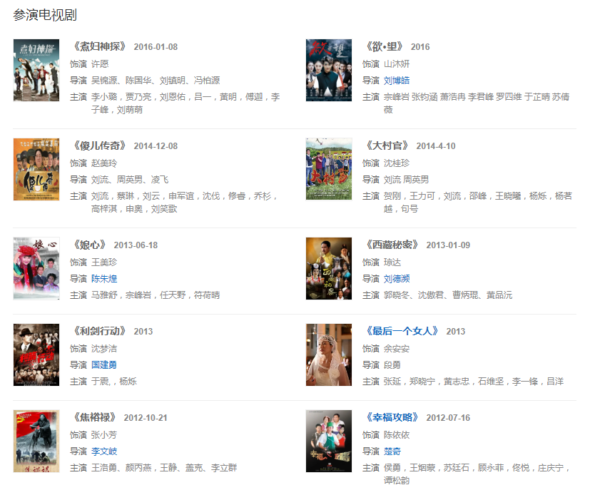 2014年,在青春勵(lì)志劇《大村官》中,飾演樸實(shí)善良的農(nóng)村媳婦沈桂珍。