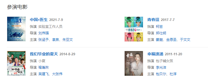 2021年,出演中國共產(chǎn)黨建黨百年獻(xiàn)禮劇《理想照耀中國》;12月31日,參加《啟航2022——中央廣播電視總臺(tái)跨年晚會(huì)》。
