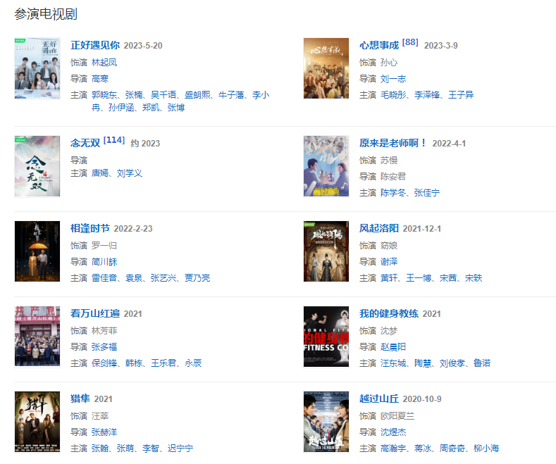 2022年2月23日,主演的都市情感劇《相逢時(shí)節(jié)》播出;4月1日,與陳學(xué)冬、張佳寧等領(lǐng)銜主演的都市校園輕喜劇《原來是老師??!》在愛奇藝播出,5月20日,張儷確定參加的勵(lì)志成長音樂競演節(jié)目《乘風(fēng)破浪第三季》播出。