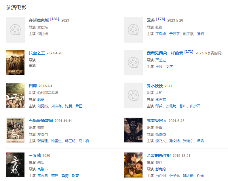 2020年1月,出演的警匪動(dòng)作片《三叉戟》殺青 ;3月7日,出演網(wǎng)劇《重生》在劇中扮演馮瀟;在《如果歲月可回頭》飾演上官慧。