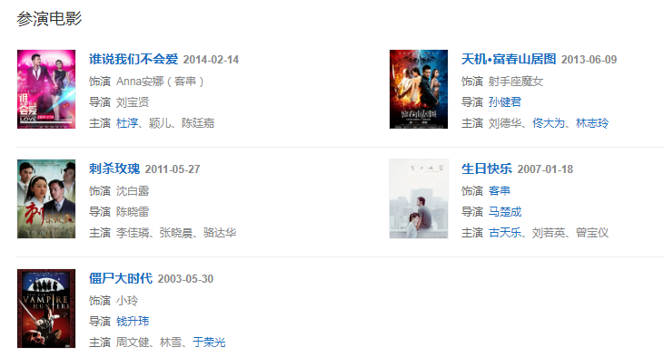 2013年,出演3D電影《天機·富春山居圖》中射手座魔女。
